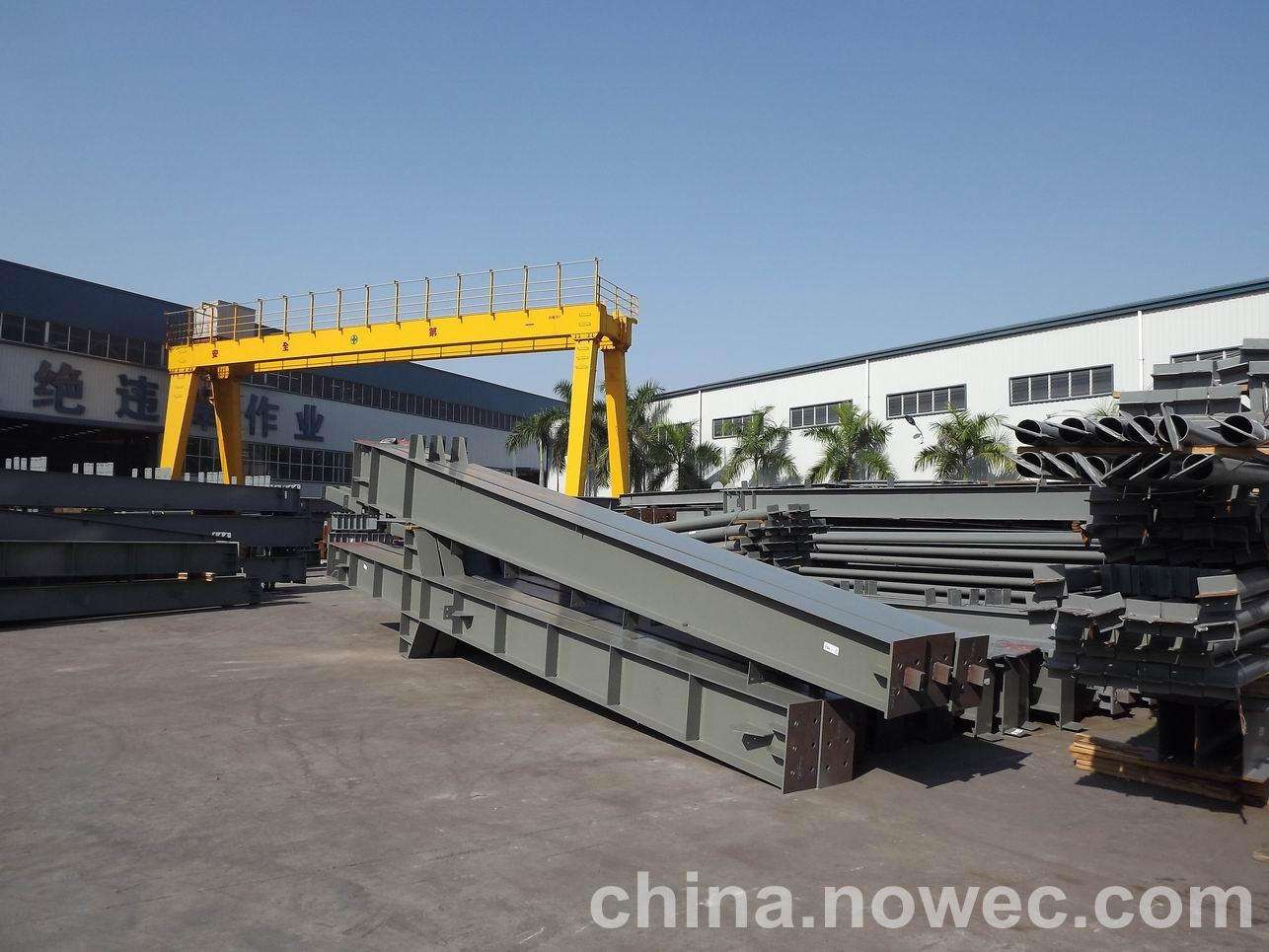条状单元一般沿长跨方向分割,其宽度约为1~3个网格,其长度为l2或l2/2(l2为短跨跨距)。块状单元一般沿奎屯网架平面纵横向分割成矩形或正方形单元。每个单元的重量以现有起重机能胜任为准。条(块)与条(块)之间可以直接拼装,也可空一网格在高空拼装。由于条(块)状单元是在地面拼装,因而高空作业量较高空散装法大为减少,拼装支架也减少很多,又能充分利用现有起重设备,故较经济。这种安装方法适用于分割后网架的钢度和受力状况改变较小的各类中小型网架,如两向正交正放四角锥、正放抽空四角锥等网架。
